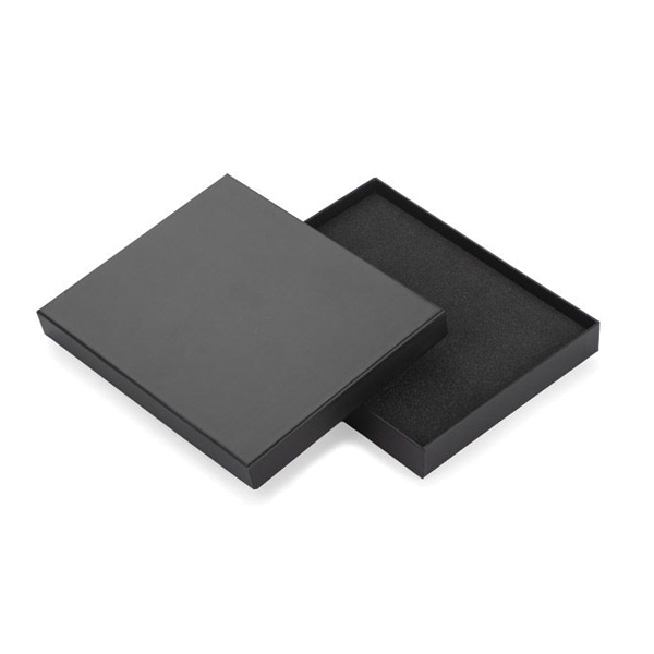 Элегантная чёрная коробка, изготовленная из прочного и качественного материала. Матовая поверхность придаёт ей стильный и эффектный вид. Внутри коробка оснащена вставкой из пены, которую можно адаптировать под выбранные продукты. Возможность создания индивидуального набора.