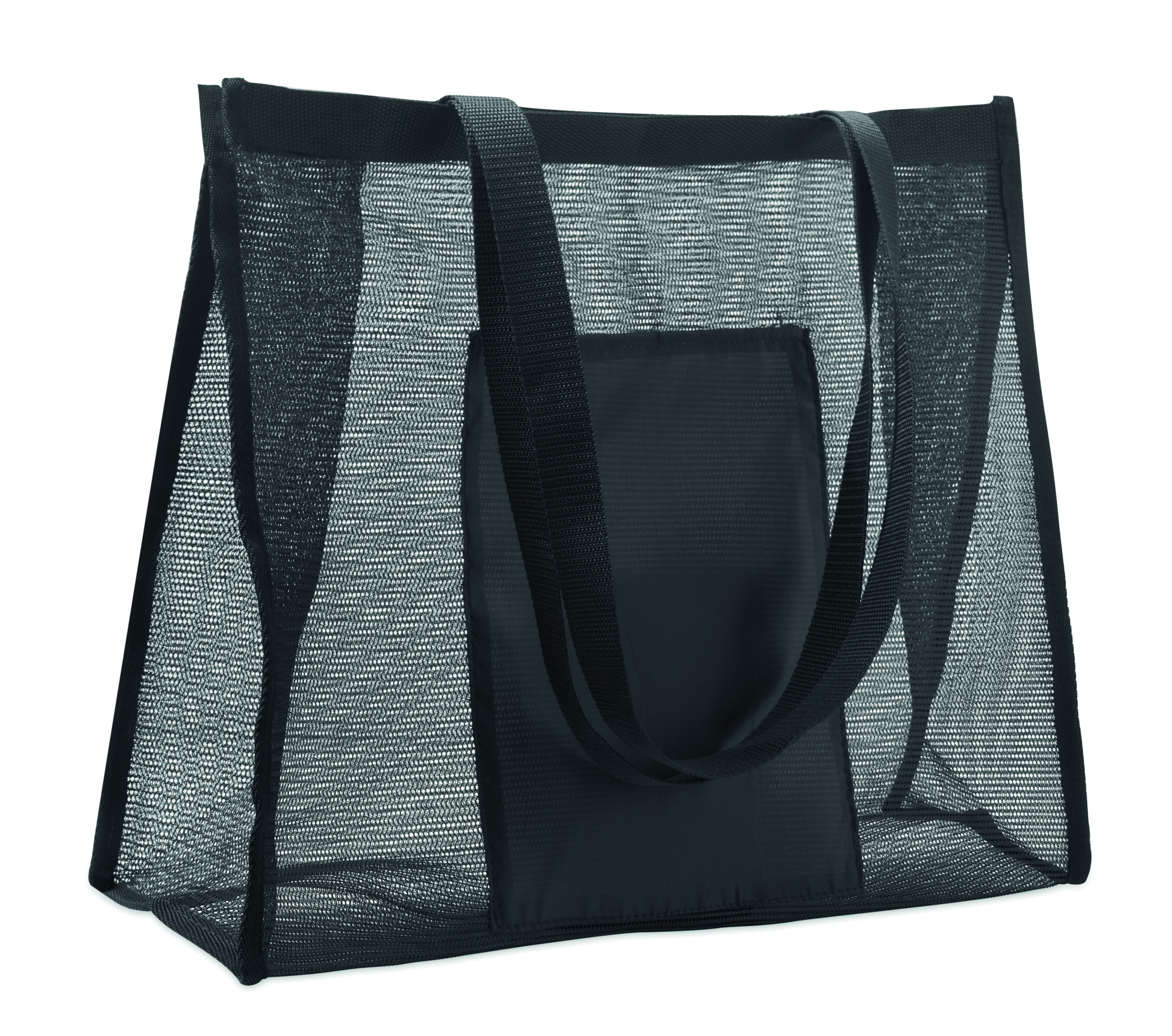 Shopping bag made of RPET mesh and 210D RPET with short handles. Includes large open front pocket. Capacity 20L, load up to 10 kg.