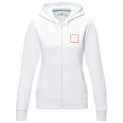 The Ruby women's organic recycled full zip hoodie – this hoodie showcases a blend of eco-conscious features that redefine modern fashion. With a soft brushed interior, it ensures a cozy feel. Made from a 280 g/m² blend of organic cotton and recycled polyester. This hoodie is designed with a fitted shape for a feminine look.