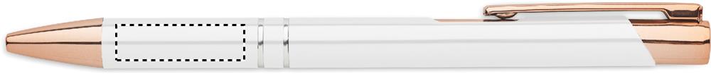 Кнопочная шариковая ручка из переработанного алюминия с деталями из розового золота. Синие чернила.