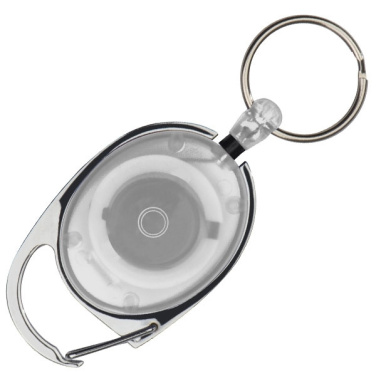 Брелок с небольшим карабином, зажимом для ремня и выдвижным брелоком. Ваш логотип будет напечатан на цветной пластиковой поверхности.