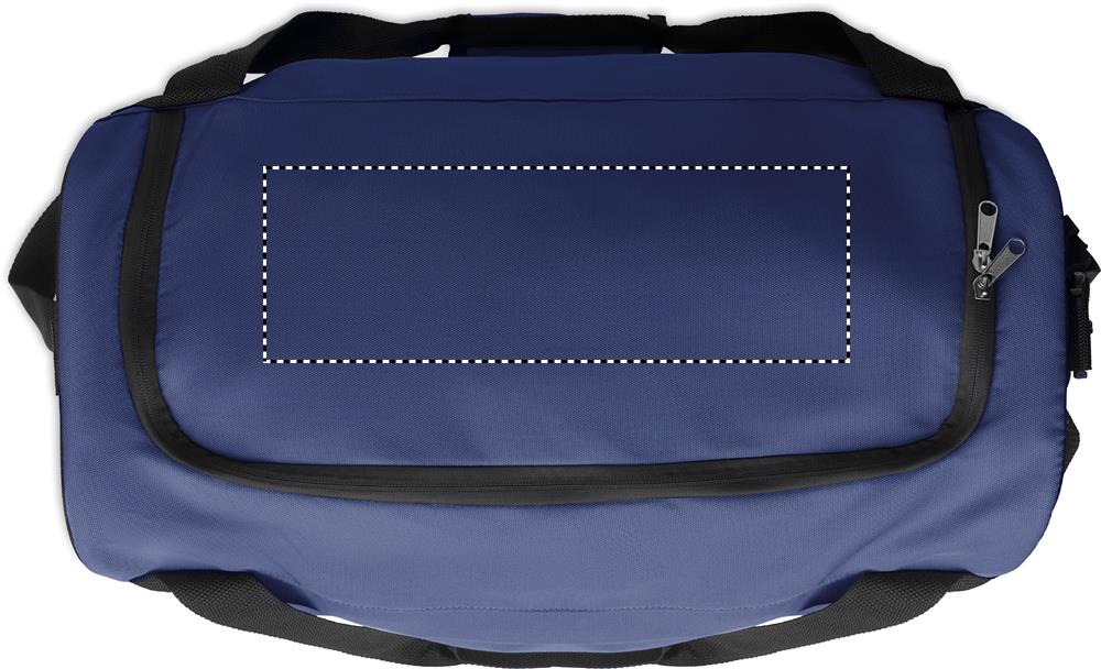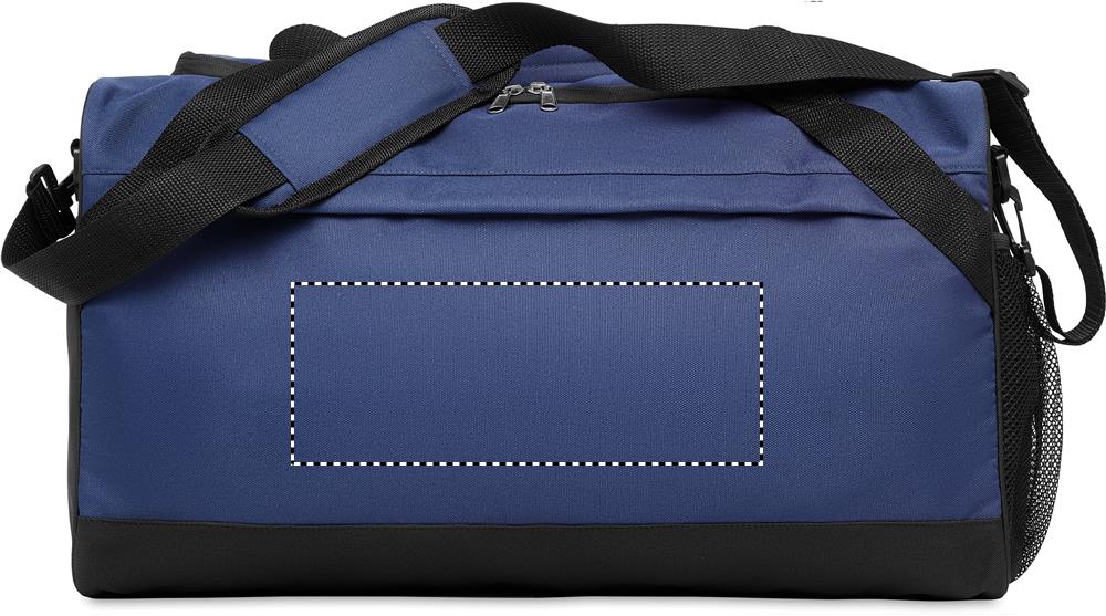 Спортивная или дорожная сумка из 600D RPET с большим фронтальным и внутренним карманом на молнии и регулируемым съемным плечевым ремнем.