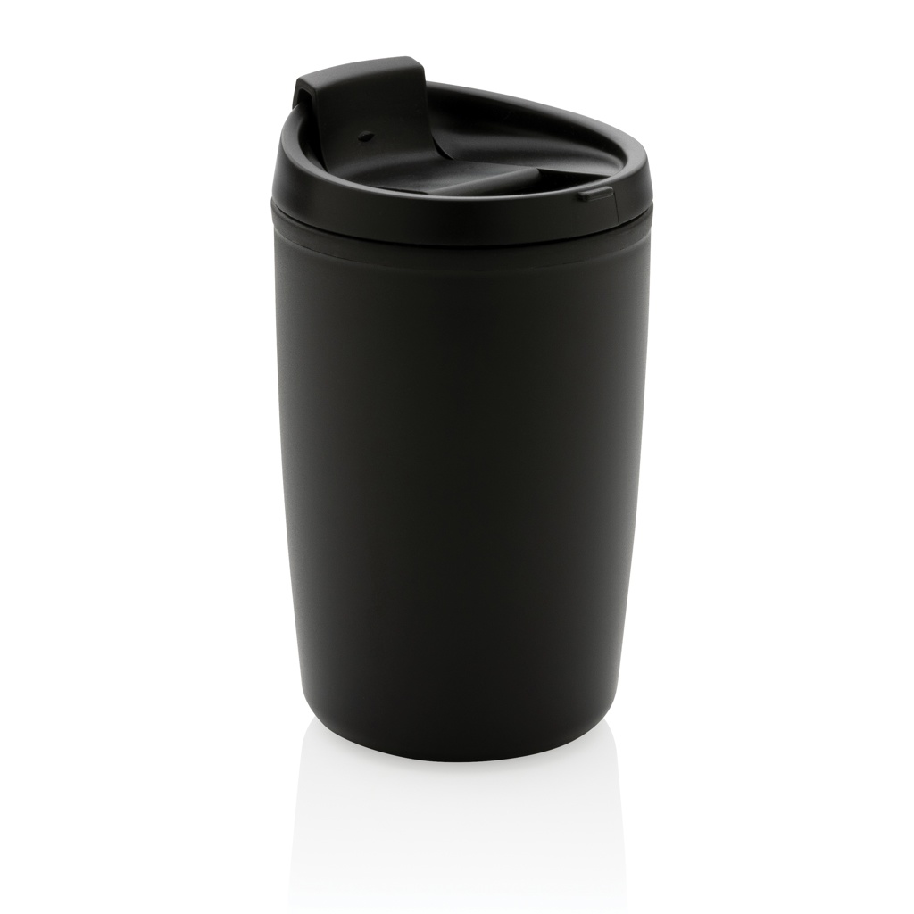 Стакан из переработанного полипропилена GRS с откидной крышкой, черный