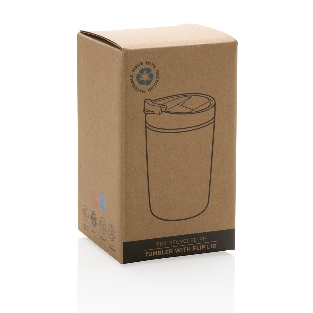 Стакан из переработанного полипропилена GRS с откидной крышкой