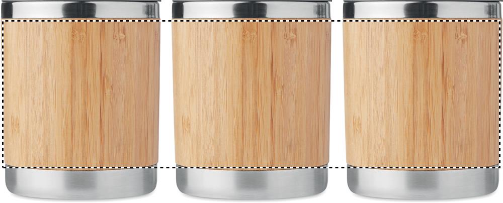 Стакан с двойными стенками из нержавеющей стали с бамбуковым покрытием и закрывающимся отверстием для питья. Емкость 250 мл. Так как бамбук является натуральным материалом, у отдельных изделий могут быть небольшие различия в цвете и размере