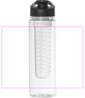 Stor, läckagesäker dricksflaska BPA-FRI (kapacitet 700 ml) med avtagbar fruktinsats. I locket finns en stor dricksöppning med stängning och ett bärhandtag integrerat. Vi trycker din logotyp på flaskan.