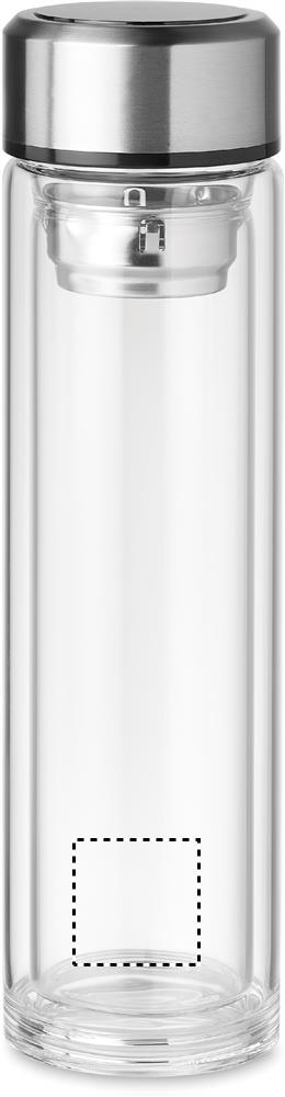Glas flaska med dubbelvägg i Boroisilikat glas. Borosilikatglas klarar stora tempraturskillnader utan att spricka och lämpar sig väl både för varma och kalla drycker. levereras med LED touchtermometer infälld i locket för att se temperaturen på insidan. Drivs av ett 1 utbytbart CR2032-batteri ingår. Volym: 390 ml. Läckagefritt.
