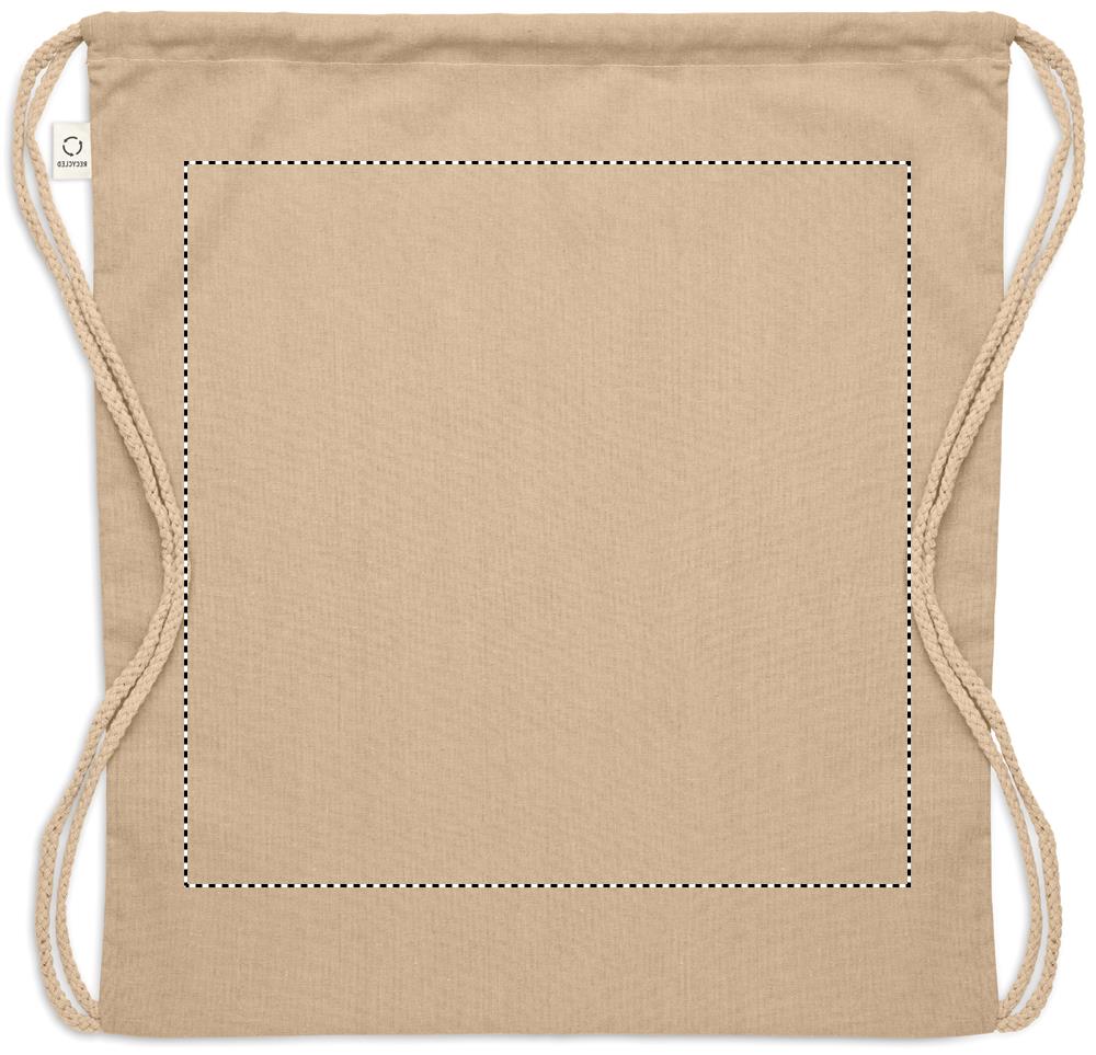 Gymnastikpåse i bomull av återvunna textilier (70 %) och RPET (30 %). 140 gr/m².