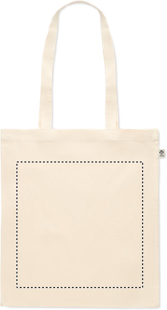 Kasse i ekologisk bomull medbälg och långa handtag. 140 gr/m².