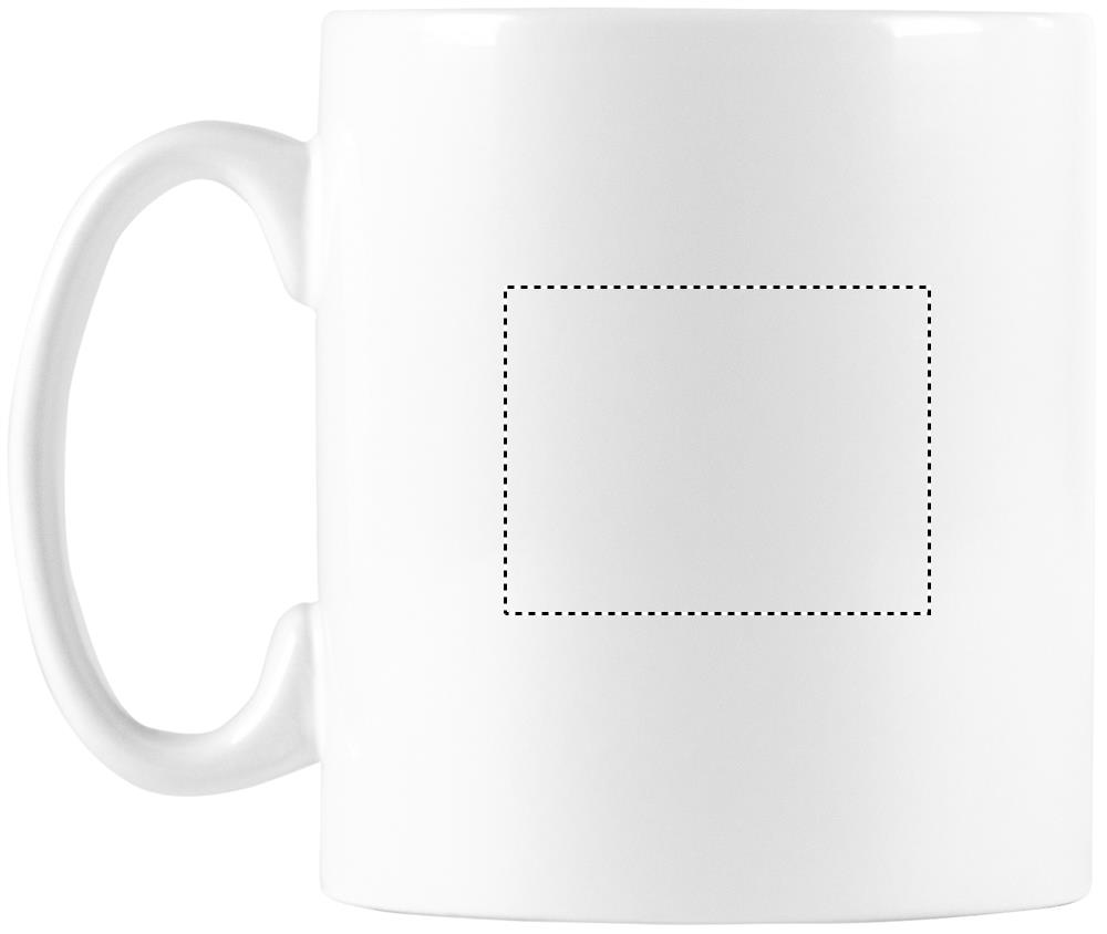 Keramikmugg i storlek 300ml med särskild beläggning för sublimeringstryck. Med sublimeringstryck kan du t.ex. trycka en stor bild runt hela muggen. Individuell förpackning i vit kartong.
