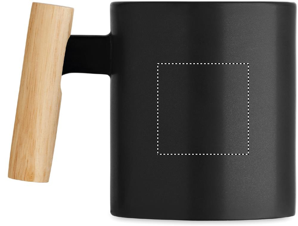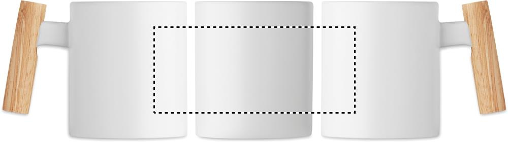 Keramikmugg med handtag av trä. Volym: 320 ml. Produkten kräver handdisk. Individuellt förpackad i vit kartong.