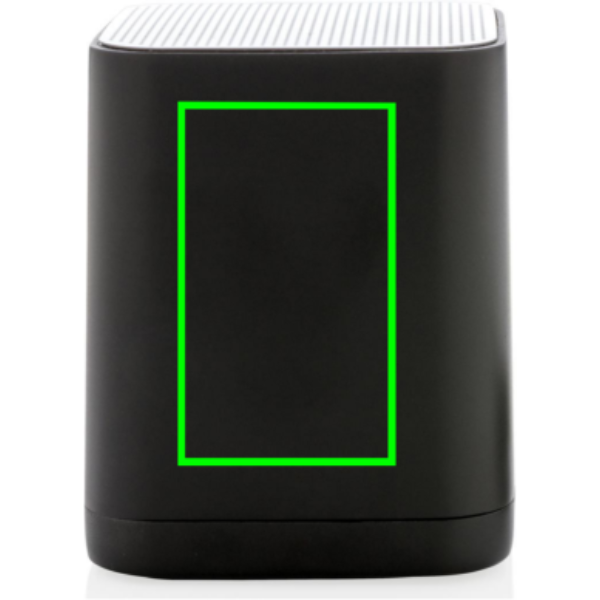 Trådlös 3W högtalare som kan graveras med en logga på ABS-ytan. Loggan lyses upp vilket skapar maximal exponering av varumärket. Högtalaren använder BT 4.2 för smidig anslutning som ger en räckvidd på upp till 10 meter. Det inbyggda 400 mAh batteriet ger en speltid på upp till 4 timmar på en laddning och att ladda upp produkten tar endast 1 timme.