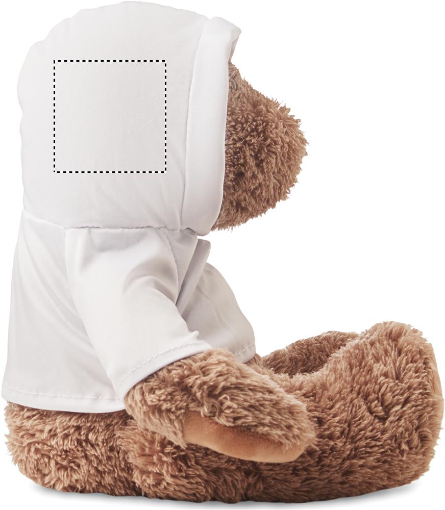Stor teddybjörn med huva i en tröja med huva. Rekommenderas med sublimeringstryck.