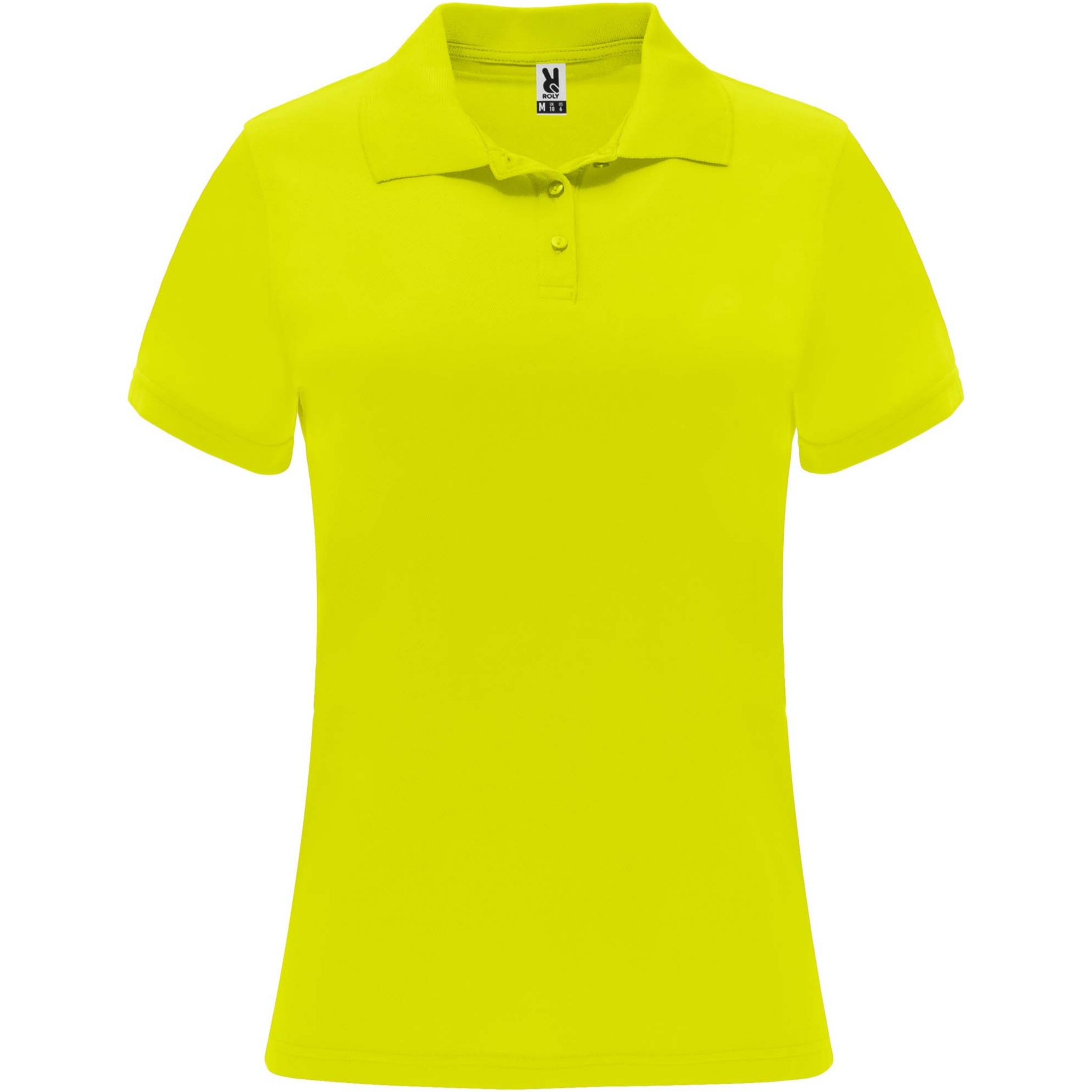 Kortärmad funktionspikétröja för dam. Stickad krage med knappslå med 3 knappar. Figursydd. Andningsbart tyg som är lätt att tvätta och torka. Borttagbar etikett. Tekniskt tyg. Andningsbart tyg. Modellen är 173 cm och bär storlek S.