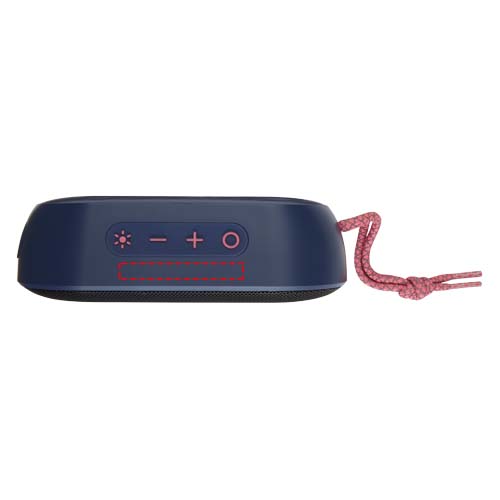 Kraftfull 7 W IPX6-certifierad trådlös högtalare med RBG-stämningsbelysning som är perfekt för utomhusaktiviteter som en picknick, att grilla, gå på stranden eller en poolfest. Det inbyggda 1 500 mAh-batteriet garanterar upp till 4 timmars uppspelningstid vid maxvolym med RGB-stämningsbelysning PÅ. Bluetooth® 5.1 med räckvidd upp till 10 meter. Inbyggd mikrofon, pick-up-funktion och röstassistent för handsfree-kontroll. Högtalaren har ett AUX-uttag och TF-kortplats (kort ingår ej). De levereras i en premium-presentförpackning.