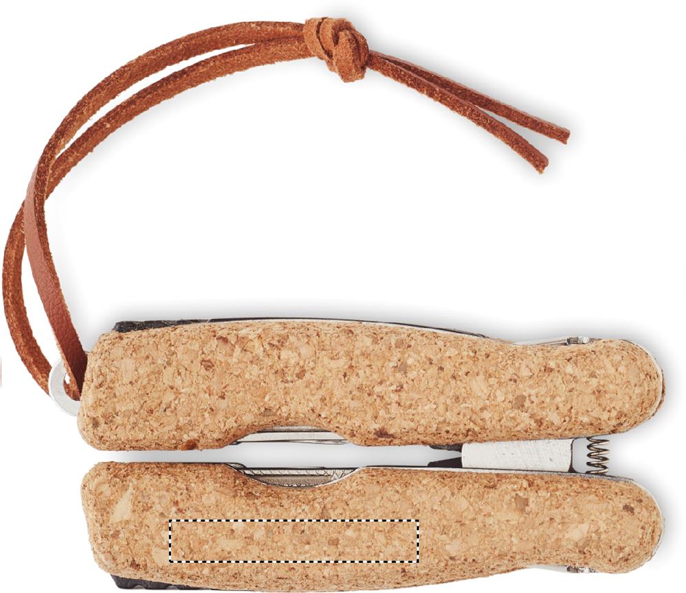 Fickkniv i rostfritt stål med flera funktioner, korkskydd och PU-handtag. 9 funktioner, innehåller: Tång, 2 öppnare, skruvmejsel med Philips-bits, sågblad, kniv, fil och skruvmejsel med platt bits.