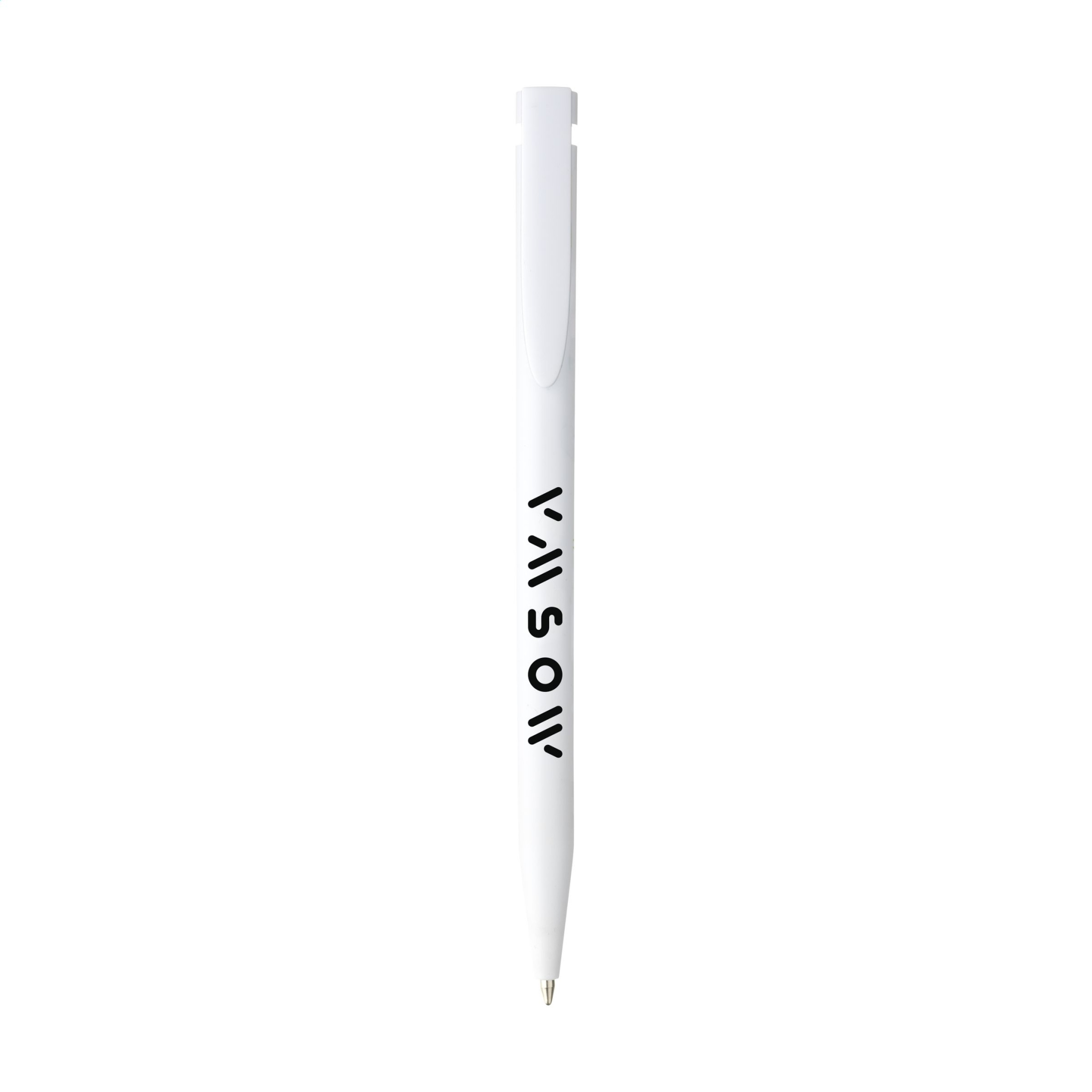 WoW! Kulspetspenna tillverkad av 85 % återvunnet ABS från hushållsapparater. Den återvunna plasten sorteras och förädlas till en ny tillverkningsbar råvara. Detta sparar cirka 70 % av energiförbrukningen jämfört med vanlig produktion av ny plast. Dessutom bidrar detta till att minska mängden engångsplast. Denna penna är tryckt med återvinningssymbolen som standard.
