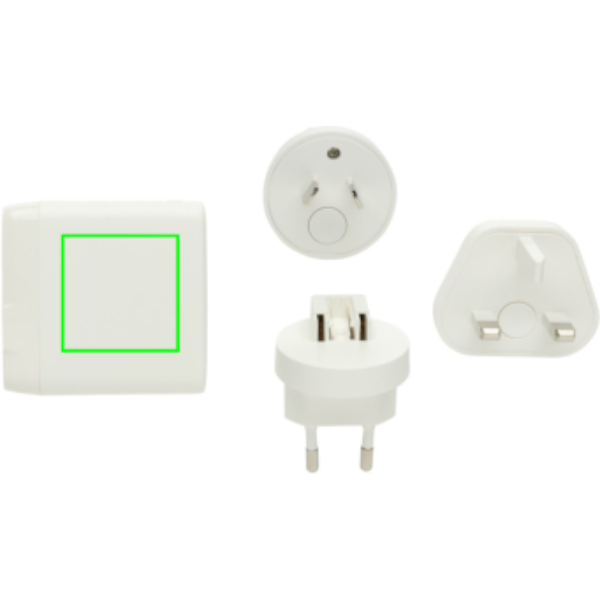 TravelCharge Pro RCS rplastisk reseladdare med USB C, vit